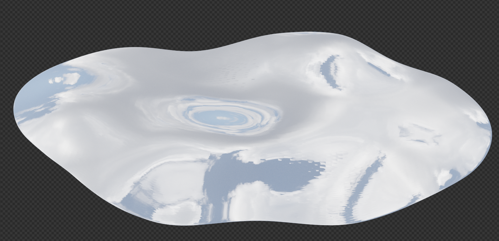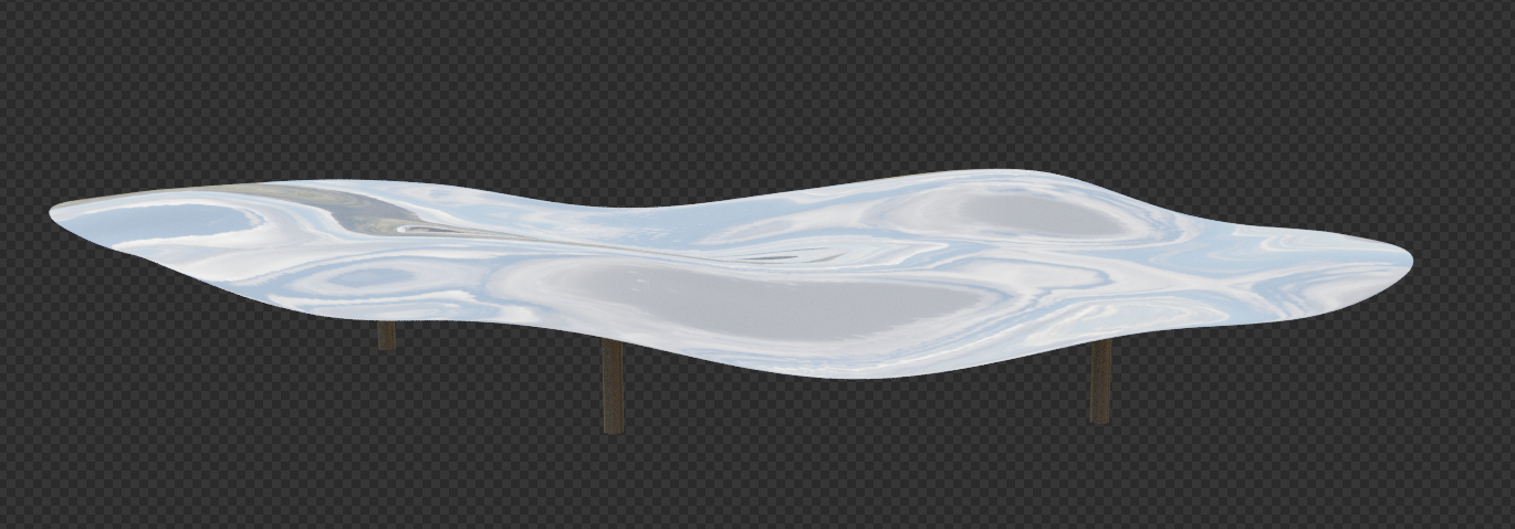 Realizzata in acciaio inox lucidato a specchio, la scultura sembra levitare a circa 15 cm dal suolo, invitando lo spettatore a sdraiarsi e, come avvolto da essa, a immergersi nelle nuvole, distaccandosi almeno per un momento dal profano.